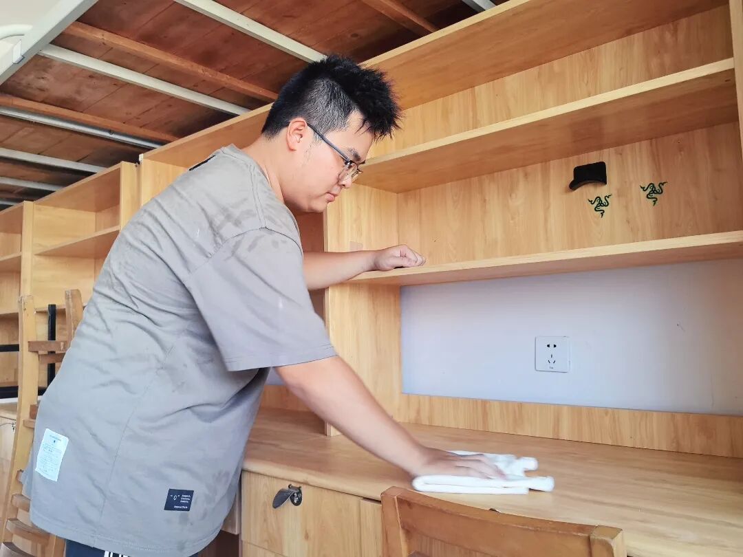 员工党员刘天乐表示:“作为一名党员,能够通过自己的劳动为新生创造一个干净舒适的家,我觉得非常有意义。这不仅是服务同学的实际行动,也是践行入党初心、发挥模范作用的生动体现。希望新生们踏入宿舍时能感受到公司的温暖和我们的心意。”