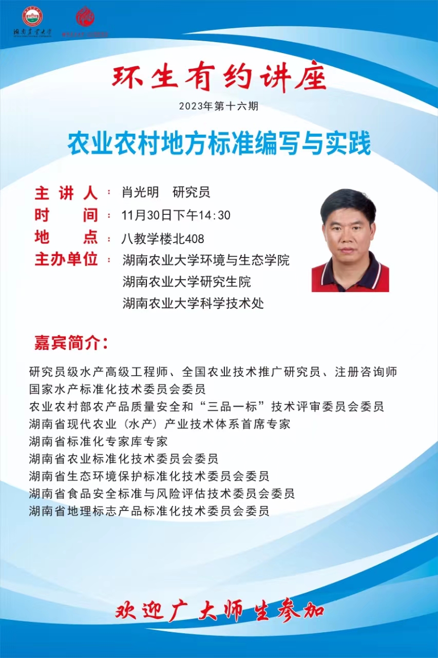 “环生有约讲座”第十六期-农业农村地方标准编写与实践
